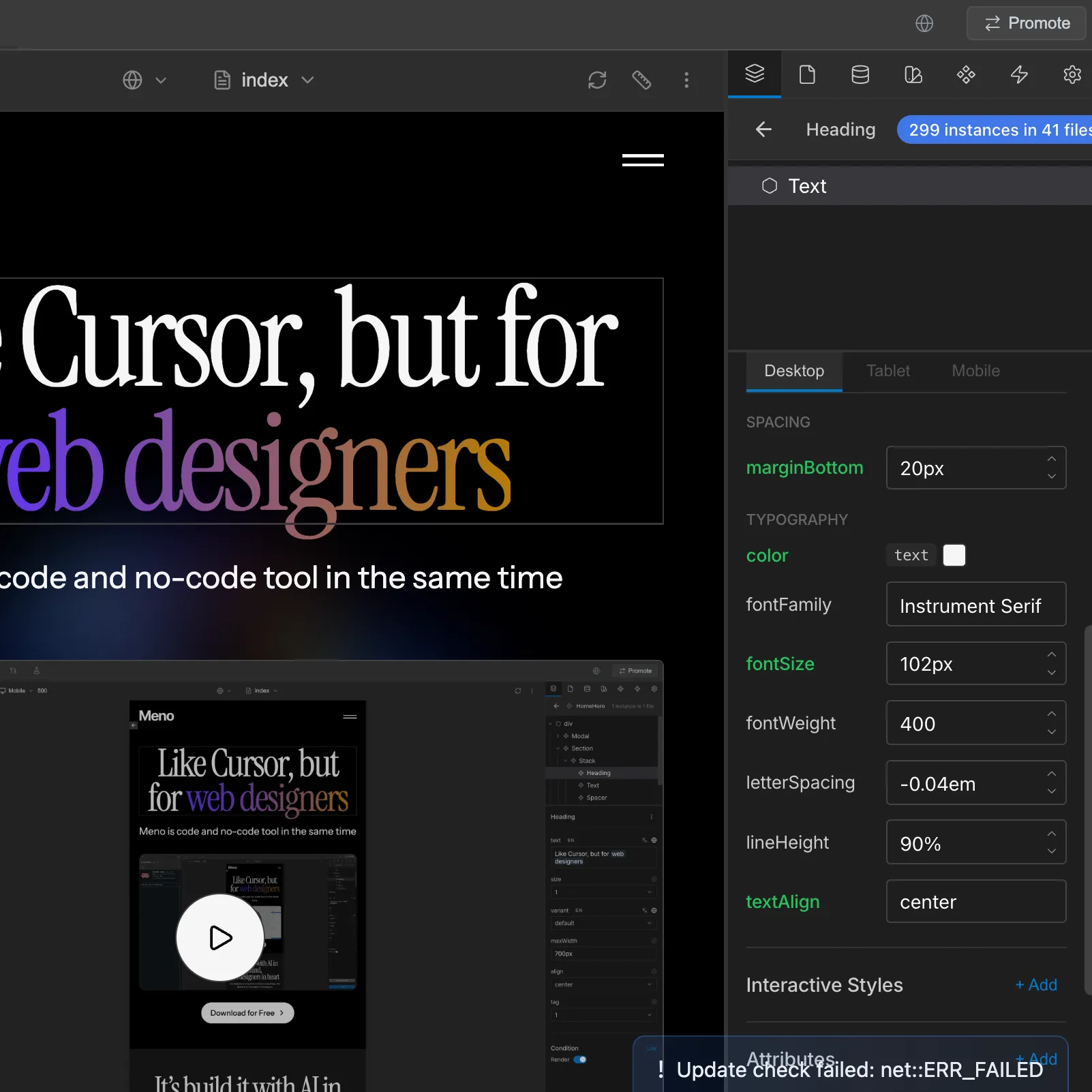 "Meno invoked the same feeling I got when opening Webflow for the first time, we're entering a new era of ai powered web development and I'm betting on meno to take us there"